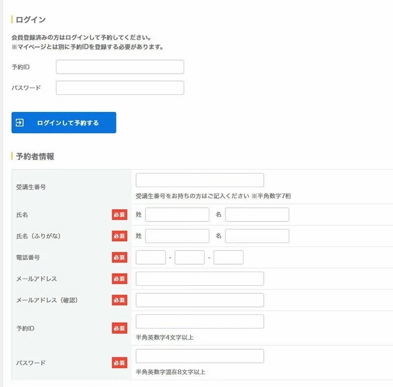 ② 日程を選択すると、予約登録画面に進みます。初回は予約IDの発行が必要です。※伊藤塾マイページのアカウントとは異なります。 予約ID・パスワードを忘れた方はこちら