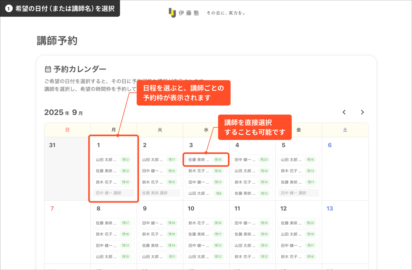 ・ 一度に2回以上の予約をまとめて行うことはできません。