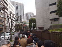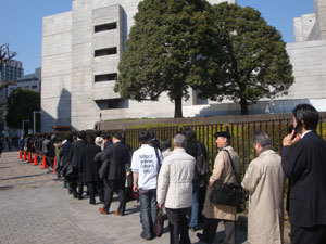 当日は、155席分の傍聴券を求めて、傍聴希望者が12:30ごろから整理券配付場所の南門前に並び始め、最終的には218名が整理券を受け取りました(若干遅れたため、整理券を受け取れなかった方もいらっしゃったようです。時間厳守で!)。